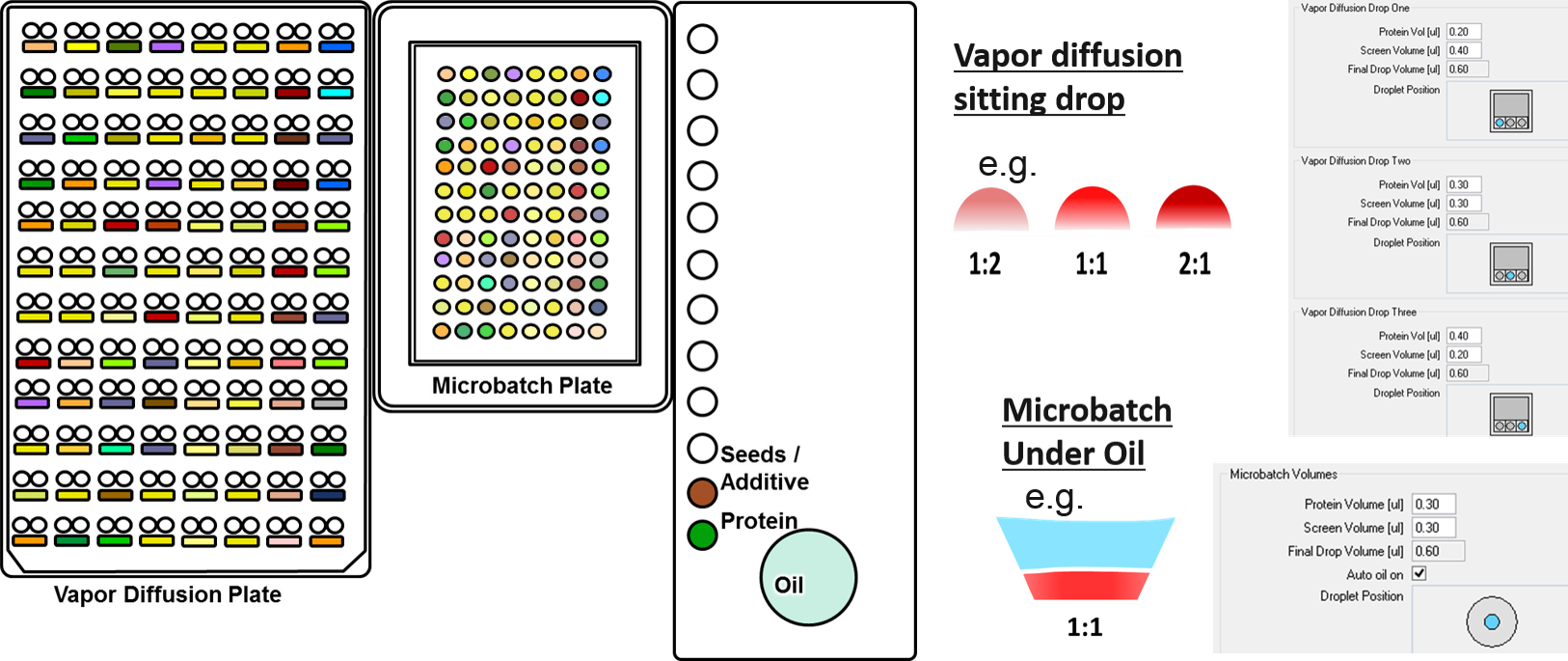 The multi parameter experiment allows drop ratios to be varied and additives (e.g. seed stock) to be added.